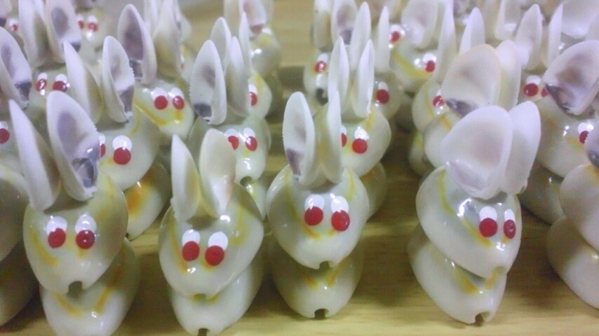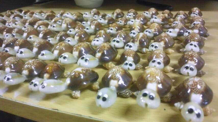 ウサギさんとカメさんの貝殻細工はモラスコむぎの売店にて、おひとつ100円で絶賛発売中です