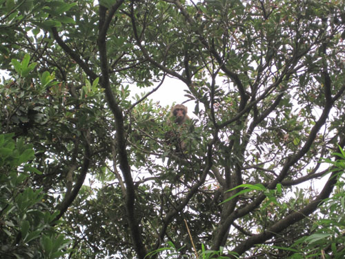 何と3匹の猿がヤマモモの木に居ました