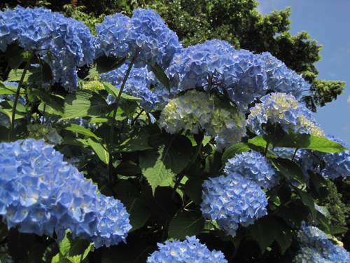 アジサイは緑→白→青→赤紫と開花に伴って花の色が変わっていくので
