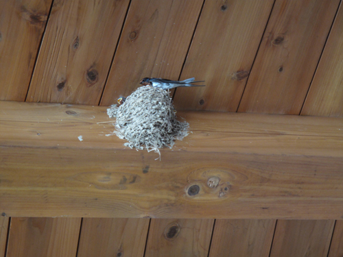 巣の材料は→湿った泥・枯れ草・自分の唾液をこねて作ります