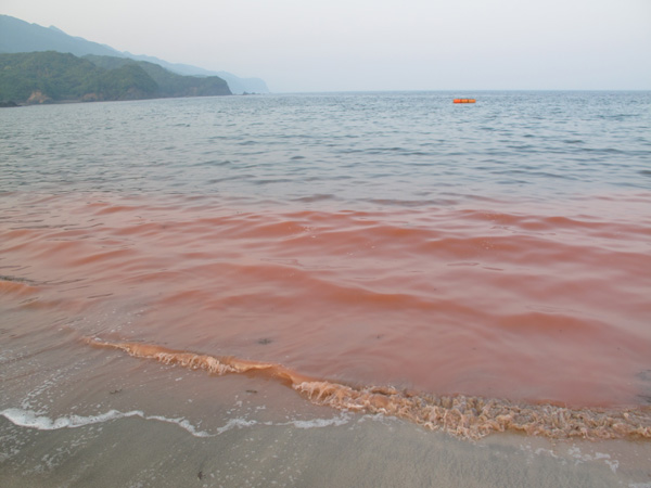 先日の事になりますが、松ヶ磯海岸に赤潮がやって来ました!!