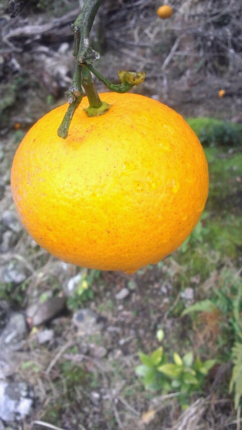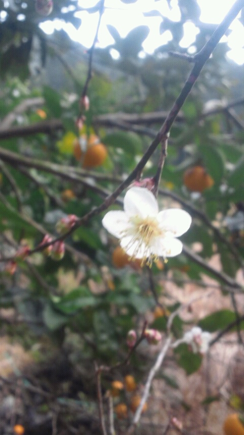 梅の木の横に謎の柑橘類の木がありました